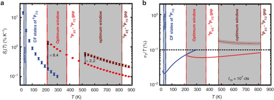 圖為Gd3+6PJ多級熒光玻爾茲曼溫度測量特性及其寬溫區(qū)間的最佳性能評估