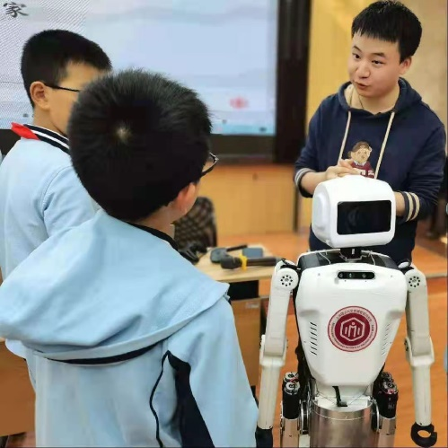 2021年5月,機(jī)器智能研究院季云峰老師,在上理工附屬小學(xué)開(kāi)展了“有趣的人工智能和機(jī)器人”講座,現(xiàn)場(chǎng)給十幾個(gè)班級(jí)的小朋友科普了現(xiàn)代人工智能與機(jī)器人相關(guān)知識(shí),現(xiàn)場(chǎng)為學(xué)生們演示了研究院的明星機(jī)器人小貝,多名學(xué)生參與演示,激發(fā)了學(xué)生對(duì)科技學(xué)習(xí)的興趣。