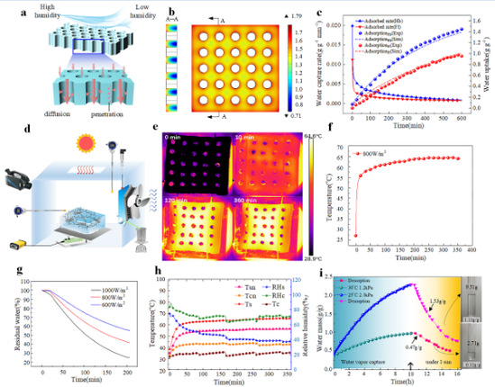 水資源在人類生產(chǎn)生活中發(fā)揮著至關(guān)重要的作用,然而由于人口增長、全球變暖和水質(zhì)惡化等問題,世界上三分之二的人口面臨淡水短缺問題。太陽能驅(qū)動的吸附式空氣取水技術(shù)可突破地域限制,利用陽光與空氣生產(chǎn)淡水,可實現(xiàn)分布式靈活供水,極具應(yīng)用推廣價值。然而由于成本、能效等諸多因素,材料研究與實際應(yīng)用之間依然存在很大的差距,多數(shù)研究成果仍止步于實驗室。針對這一困境,我校能動學(xué)院制冷低溫創(chuàng)新團(tuán)隊開發(fā)了一種高性能、可拓展的蜂窩式水凝膠基復(fù)合吸附劑,并搭建了一套高集成的空氣取水裝置,完成了從材料到熱力學(xué)優(yōu)化再到裝置的系統(tǒng)性研究。結(jié)果表明通過蜂窩優(yōu)化的PCLG吸附床結(jié)構(gòu)設(shè)計,可大幅降低水蒸氣的滲透阻力,提升床體內(nèi)的傳熱傳質(zhì)能力,為高效的空氣取水提供了理論支撐。