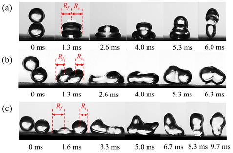 三種基本狀態(tài)下液滴的融合反彈行為