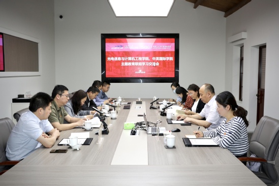 為深入開展學習貫徹習近平新時代中國特色社會主義思想主題教育,5月5日上午,中英國際學院、光電信息與計算機工程學院以“貫徹落實新發(fā)展理念,抓實推進國際化人才培養(yǎng)”為主題,在復興路校區(qū)舉行主題教育聯(lián)組學習。雙方學院班子成員、部門負責人代表參加,中英國際學院黨委書記李妍主持。