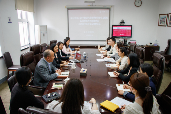 5月10日下午,副校長蔡永蓮赴復興路校區(qū)為中英國際學院黨委中心組講黨課,作“學習貫徹習近平新時代中國特色社會主義思想以奮發(fā)有為的精神狀態(tài)開創(chuàng)學校高質(zhì)量發(fā)展新局面”專題輔導報告。中英國際學院領導班子成員、中心組成員參加,學院黨委書記李妍主持。
