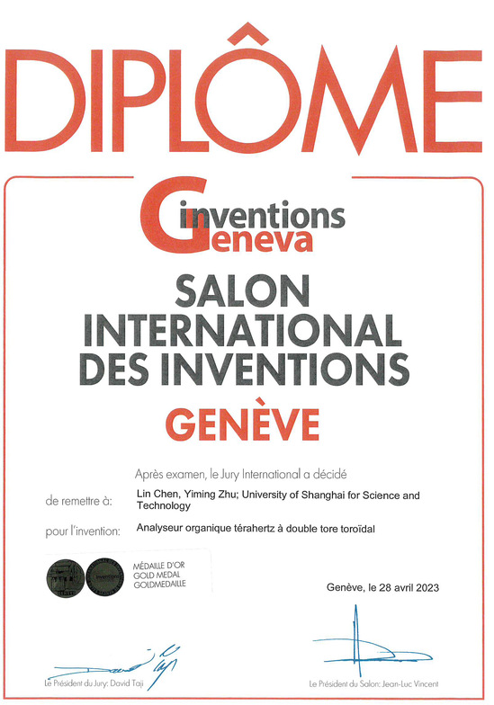 4月30日,第四十八屆日內(nèi)瓦國際發(fā)明展在瑞士日內(nèi)瓦閉幕,公布的獲獎名單中共有55個中國團隊項目獲評金獎。光電學(xué)院在莊松林院士指導(dǎo)下完成的作品“太赫茲雙磁環(huán)有機物分析儀”(Terahertz dual-torus toroidal organic analyzer)從諸多參賽項目中脫穎而出,斬獲金獎。
