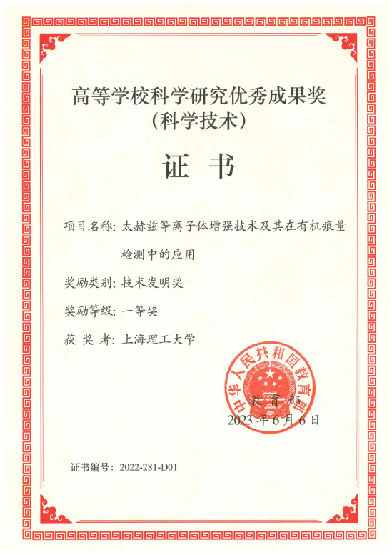 近日,教育部頒發(fā)了高等學(xué)??茖W(xué)研究優(yōu)秀成果獎(科學(xué)技術(shù))獲獎證書,在中國工程院莊松林院士的指導(dǎo)下,上海理工大學(xué)太赫茲技術(shù)創(chuàng)新研究院朱亦鳴教授牽頭完成的“太赫茲等離子體增強(qiáng)技術(shù)及其在有機(jī)痕量檢測中的應(yīng)用”成果榮獲2022年度教育部高等學(xué)??茖W(xué)研究優(yōu)秀成果獎——技術(shù)發(fā)明一等獎,這是我校首次以第一完成單位身份獲得該獎項一等獎,也是我校于2021年在相關(guān)科研領(lǐng)域獲得上海市技術(shù)發(fā)明一等獎和青年科技杰出貢獻(xiàn)獎之后再獲省部級科技獎勵一等獎,足以證明在上理工科研工作者的努力下,我校已成為太赫茲技術(shù)研發(fā)領(lǐng)域的“重鎮(zhèn)”之一。