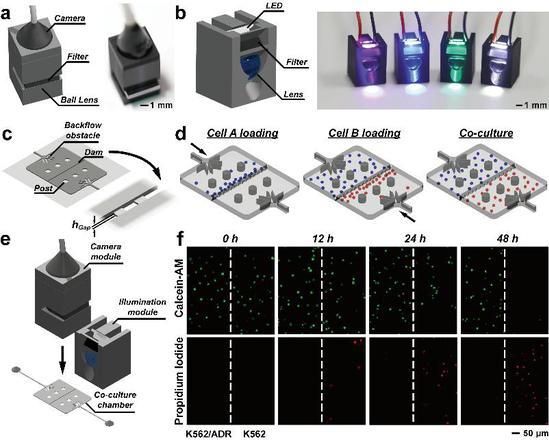 本研究受活字印刷術(shù)的啟發(fā),提出了一種3D模塊化微流控(3D-FAMM)制造技術(shù),為各種微流體控制模具以及各類功能性器件(閥門、照明光源、顯微相機(jī))制定了模塊化標(biāo)準(zhǔn)。通過倒模復(fù)刻已組裝的模具,可制造出復(fù)雜結(jié)構(gòu)的微流控系統(tǒng)。研究中,利用3D模塊化系統(tǒng)演示了多種應(yīng)用,包括生成復(fù)雜濃度梯度,生成和操控微液滴,以及捕獲和共培養(yǎng)細(xì)胞。3D模塊化技術(shù)可以快速制造出各種微流控系統(tǒng)的原型樣件,構(gòu)建片上研究平臺(tái),實(shí)現(xiàn)高效的概念驗(yàn)證或產(chǎn)品開發(fā)階段的測(cè)試及小批量制造。3D模塊化技術(shù)功能性強(qiáng)、靈活性高,在生命科學(xué)領(lǐng)域具有廣闊的應(yīng)用前景。