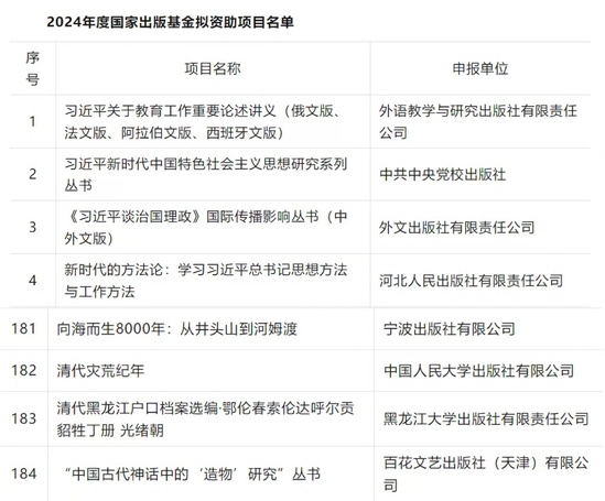 2024年度國家出版基金資助項目評審結(jié)果公告鏈接: