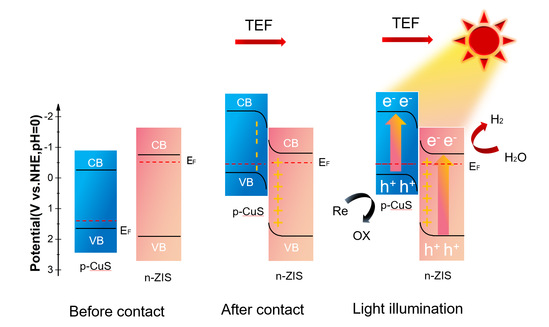 寶石納米花狀ZnIn2S4/CuS異質(zhì)結(jié)光催化制氫示意圖(文章TOC)