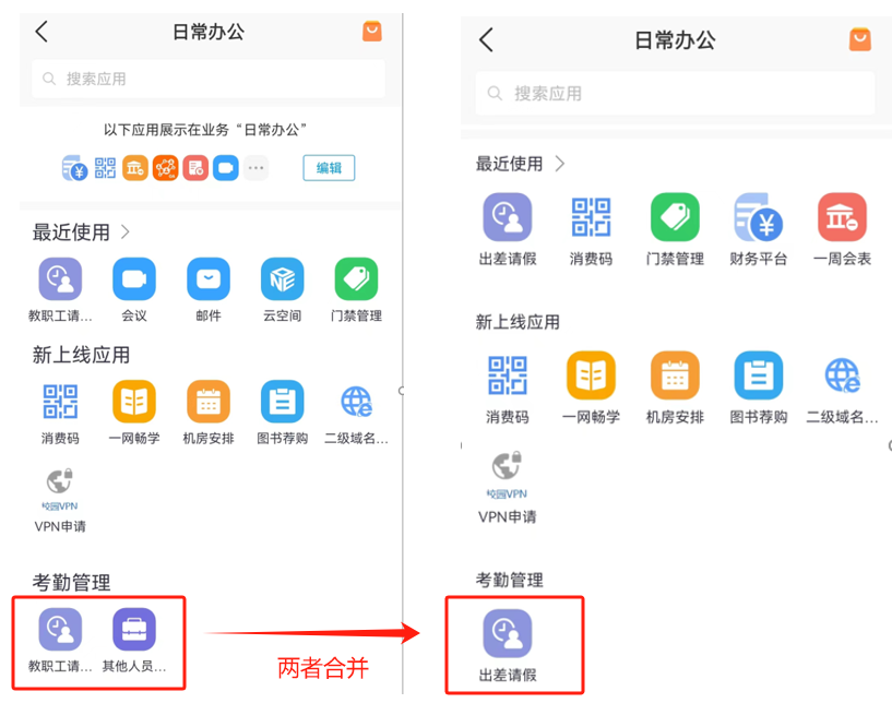 為進(jìn)一步增進(jìn)我校出差審批業(yè)務(wù)的效率與便利性,強(qiáng)化各部門間的工作協(xié)同效應(yīng),推進(jìn)財(cái)務(wù)和人事各項(xiàng)服務(wù)的全面數(shù)字化轉(zhuǎn)型,財(cái)務(wù)處與人事處共同對(duì)出差審批功能進(jìn)行了優(yōu)化?,F(xiàn)將相關(guān)變化內(nèi)容通知如下: