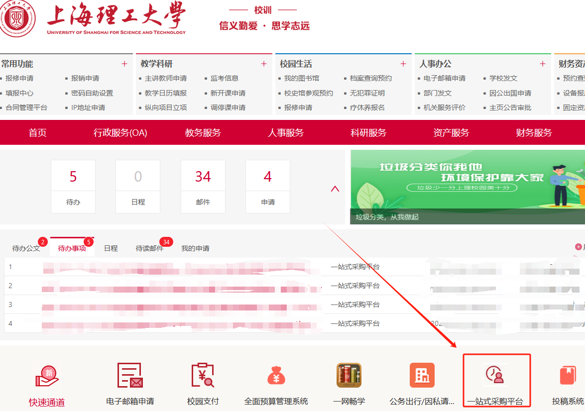 用戶登錄信息門戶,點(diǎn)擊“一站式采購平臺”