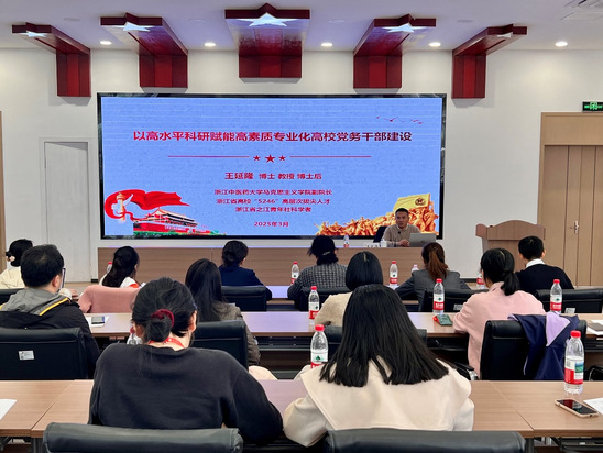 在理論教學(xué)環(huán)節(jié),浙江紅船干部學(xué)院余劍教授以“貫徹落實中央八項規(guī)定精神,推進黨的作風(fēng)建設(shè)”為主題,用嚴謹?shù)倪壿?、鮮活的案例和生動的語言深入淺出地向?qū)W員們解讀好“加強和改進作風(fēng)建設(shè)的核心問題是保持黨同人民群眾的血肉聯(lián)系”這個重大政治問題。浙江中醫(yī)藥大學(xué)科研部副部長、馬克思主義學(xué)院副院長王延隆教授則為學(xué)員們做了“以高水平科研賦能高素質(zhì)專業(yè)化高校黨務(wù)干部建設(shè)”專題輔導(dǎo)報告,從如何把握學(xué)科范式、界準研究類別、確定選題方向、提高研究效率等方面解讀了新時代黨的基層黨務(wù)工作者如何以科研能力提升賦能黨務(wù)工作專業(yè)化的高質(zhì)量發(fā)展。兩次專題輔導(dǎo)既緊密結(jié)合開展深入貫徹中央八項規(guī)定精神學(xué)習(xí)教育的重要要求,又緊扣基層黨務(wù)干部如何提升業(yè)務(wù)和科研素質(zhì)的發(fā)展性需求,對促進基層黨的建設(shè)質(zhì)量提升具有較強的指導(dǎo)性,學(xué)員們紛紛表示獲益良多。