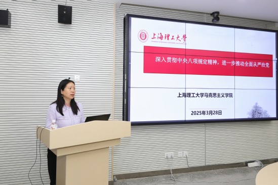 馬克思主義學(xué)院院長金瑤梅以“深入貫徹中央八項規(guī)定精神,進(jìn)一步推動全面從嚴(yán)治黨”為題,結(jié)合中央八項規(guī)定精神的歷史背景和主要內(nèi)容,通過政策圖解和關(guān)鍵詞解讀,系統(tǒng)闡釋了中央八項規(guī)定精神的核心要義、歷史意義及現(xiàn)實意義。她表示,要學(xué)深悟透習(xí)近平總書記關(guān)于加強(qiáng)黨的作風(fēng)建設(shè)的重要論述和中央八項規(guī)定精神,在實干擔(dān)當(dāng)中更好強(qiáng)作風(fēng)、建新功,把深入貫徹中央八項規(guī)定精神學(xué)習(xí)教育的成效更好轉(zhuǎn)化為推動高質(zhì)量發(fā)展的成果。