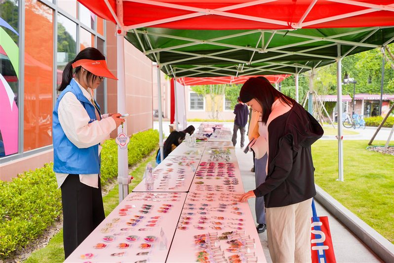 本屆畢業(yè)設(shè)計展覽現(xiàn)場特別增設(shè)了主視覺與畢業(yè)設(shè)計作品衍生文創(chuàng)市集和“虎兔龍蛇”時光驛站打卡區(qū)?!叭雽W(xué)年份是虎年,經(jīng)歷了四個四季輪回,今年已是蛇年,將生肖裝置與畢業(yè)設(shè)計展打卡墻結(jié)合起來,也算是今年畢設(shè)展的‘小巧思’”畢設(shè)主視覺設(shè)計相關(guān)同學(xué)介紹道。