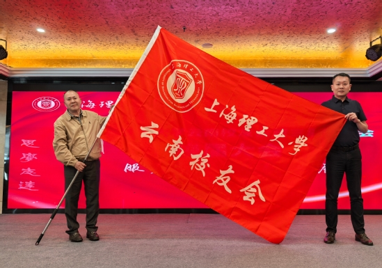 劉德強代表校友總會宣讀了《關(guān)于同意上海理工大學(xué)云南校友會換屆的批復(fù)》及新一屆校友理事會名單,并對新一屆理事會成員表示祝賀。校友處處長曲德強代表學(xué)校向云南校友會第三屆理事會授旗,第三屆理事會當(dāng)選會長楊惠生鄭重接旗。