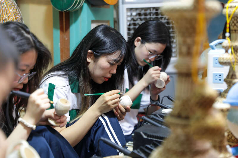 學生們在喀什古城體驗燙畫