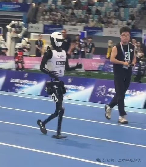 8月14日開(kāi)幕式上,卓益得團(tuán)隊(duì)自主研發(fā)的 “行者二號(hào)” 被選中作為護(hù)旗手,當(dāng)它邁著穩(wěn)健而精準(zhǔn)的步伐,護(hù)送著象征榮譽(yù)與精神的旗幟走過(guò)會(huì)場(chǎng)時(shí),每一個(gè)關(guān)節(jié)的靈活轉(zhuǎn)動(dòng)、每一次步伐的協(xié)調(diào)統(tǒng)一,都彰顯著中國(guó)在人形機(jī)器人運(yùn)動(dòng)控制領(lǐng)域的突破性進(jìn)展,現(xiàn)場(chǎng)觀眾的掌聲與驚嘆聲此起彼伏,為這一融合了科技與儀式感的瞬間所震撼。而在8月15日舉辦的1500米決賽中,”行者二號(hào)“又展現(xiàn)出強(qiáng)悍的運(yùn)動(dòng)實(shí)力,在第二組小組奪取第一。這一亮眼成績(jī),不僅是繼半馬季軍之后的又一精彩時(shí)刻,更用實(shí)力向世界宣告:來(lái)自中國(guó)人形機(jī)器人的“速度與激情”,正以不可阻擋之勢(shì)驚艷全球。