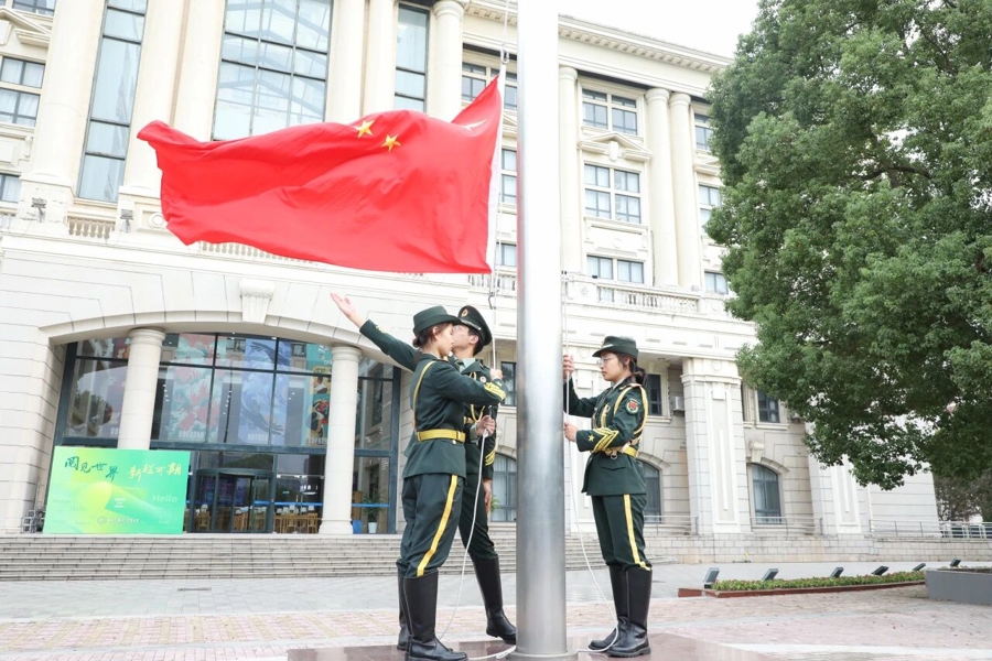 在上海外國(guó)語(yǔ)大學(xué)在松江校區(qū)圖文信息中心下沉式廣場(chǎng)舉行的升旗儀式上。上外2025級(jí)俄語(yǔ)專業(yè)的唐思琪同學(xué)發(fā)表主題為“以國(guó)旗為帆,以青春為榮,激蕩愛(ài)國(guó)浪潮”的演講,她倡議同學(xué)們要努力鉆研外語(yǔ),在專業(yè)領(lǐng)域深耕細(xì)作,在國(guó)際交流中自信發(fā)聲,努力成為中外溝通的紐帶,讓世界更好地了解中國(guó),讓中國(guó)更好地?fù)肀澜纭樽鎳?guó)的外交事業(yè)、文化傳播添磚加瓦。