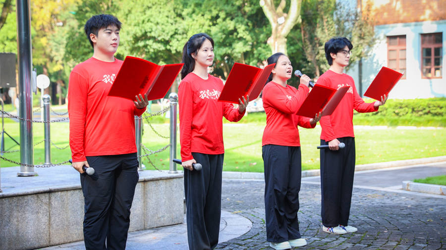 上理工黨委副書記、副校長(zhǎng)劉德強(qiáng)表示,一代代上理人始終將個(gè)人理想融入國(guó)家命運(yùn),始終在教育救國(guó)、科技報(bào)國(guó)的道路上砥礪前行。學(xué)生代表劉鑫妤、丑昊源、周怡宏、陳家成向祖國(guó)獻(xiàn)詞《踔厲奮發(fā)新征程 挺膺擔(dān)當(dāng)正青春》,深情朗誦展現(xiàn)了上理青年學(xué)子心懷家國(guó)、挺膺擔(dān)當(dāng),以青春之力接續(xù)奮斗、以昂揚(yáng)之姿奔赴新征程的向上風(fēng)貌。