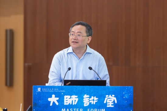 朱新遠(yuǎn)一行先參觀了香港中文大學(xué)(深圳)的圖書館和AIE展廳等,詳細(xì)了解該校在校園規(guī)劃建設(shè)、原創(chuàng)性基礎(chǔ)研究、顛覆性技術(shù)創(chuàng)新、先進(jìn)性成果“落地”與“產(chǎn)業(yè)化”、高水平實(shí)驗(yàn)室和平臺建設(shè)等方面的發(fā)展情況。隨后朱新遠(yuǎn)應(yīng)邀作為香港中文大學(xué)(深圳)“大師講堂”的主講人在洗為堅(jiān)國際會(huì)議中心為香港中文大學(xué)(深圳)師生作題為《超支化聚合物的可控制備及其在國家重大工程中的應(yīng)用——探索從基礎(chǔ)研究走向?qū)嶋H應(yīng)用》的專題報(bào)告。