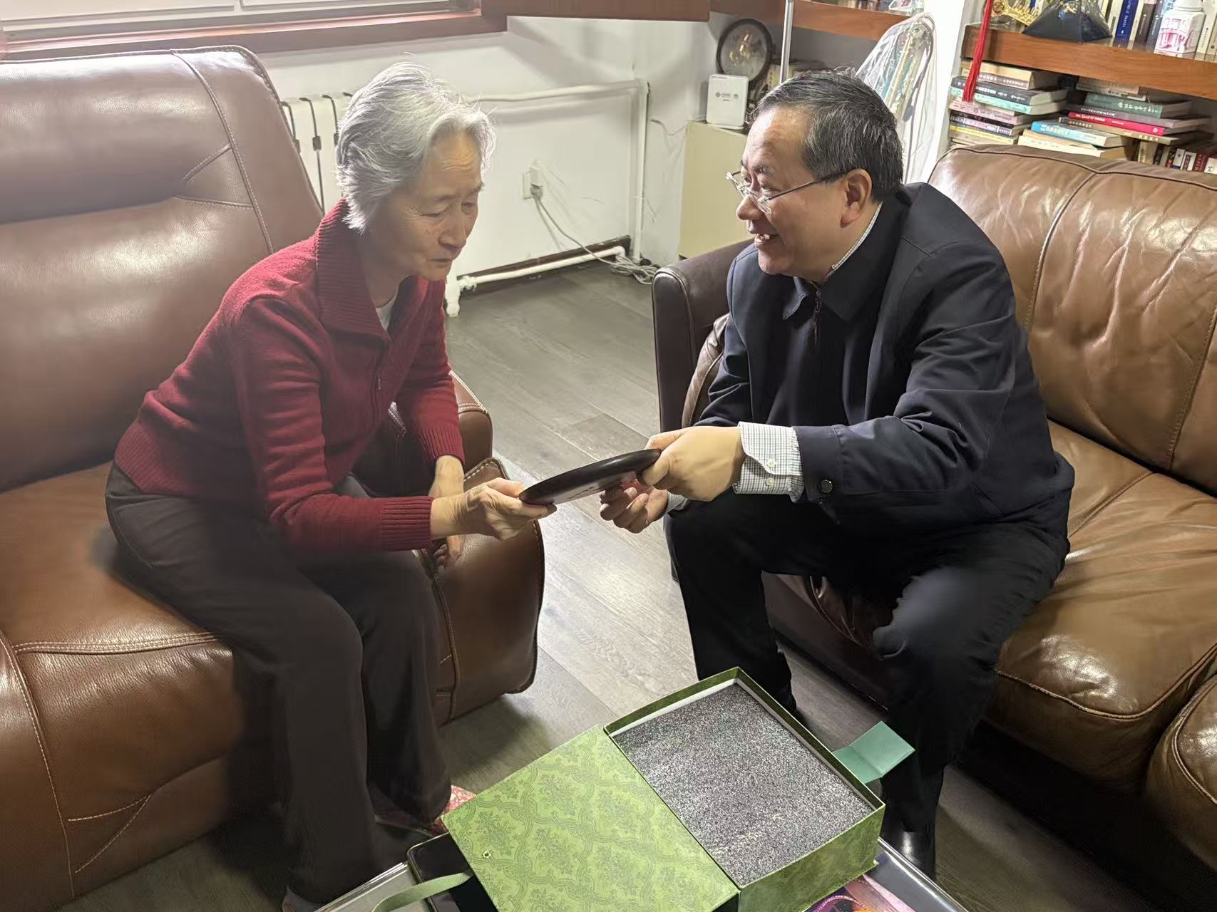 朱新遠(yuǎn)首先代表學(xué)校轉(zhuǎn)達(dá)了母校對李道豫伉儷的深切問候和祝福,獻(xiàn)上了學(xué)校精心制作的校友紀(jì)念盤,并與吳振蓉先生進(jìn)行了座談。交流中,朱新遠(yuǎn)向吳振蓉先生介紹了學(xué)校發(fā)展歷程、未來規(guī)劃及近年來在科技創(chuàng)新、人才培養(yǎng)等方面取得的顯著成效。他強調(diào),全體上理人正凝心聚力,深入貫徹落實黨的二十大三中、四中全會精神,嚴(yán)格按照市委市政府決策部署,錨定國家和地方經(jīng)濟發(fā)展需求,以實干篤行推動學(xué)校建大建強、行穩(wěn)致遠(yuǎn),為120周年校慶獻(xiàn)禮。吳振蓉先生愉快地回憶了在校園里的兒時歲月,深情地講述了當(dāng)時和大學(xué)生一起在滬江大學(xué)食堂就餐、請學(xué)姐梳頭等一段段美好的求學(xué)和生活經(jīng)歷。她表示將和李道豫大使一起一如既往地關(guān)注和支持母校的發(fā)展,為母校的建設(shè)貢獻(xiàn)自己的力量。