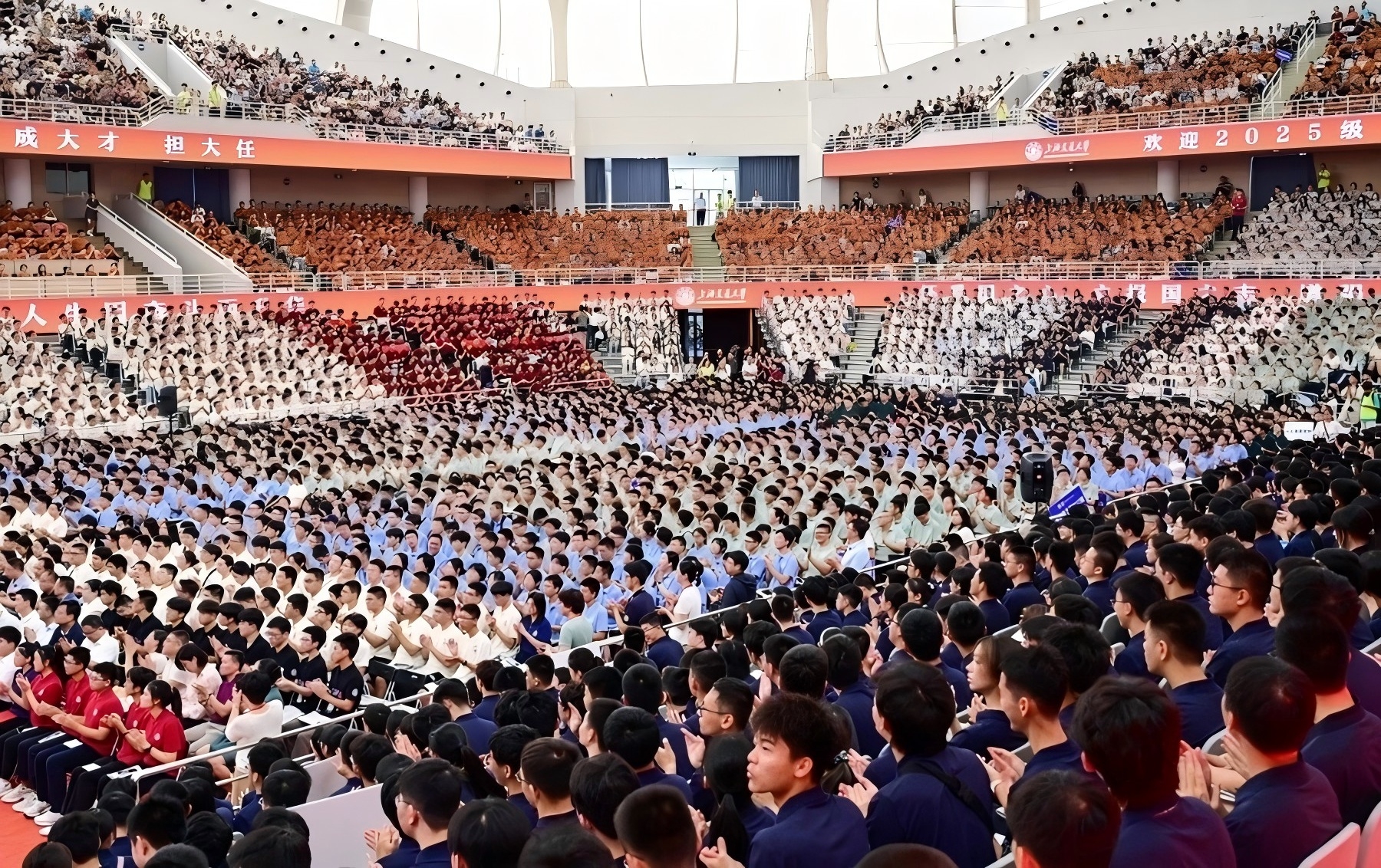 8月27日,上海交通大學2025級本科新生開學典禮和開學第一課在閔行校區(qū)舉行,全校5200余名新生參加典禮,共同開啟屬于新“交大人”的青春篇章
