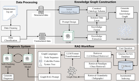 研究團隊構(gòu)建了一套包含四階段的全流程診斷框架:數(shù)據(jù)預(yù)處理標準化多模態(tài)故障記錄;基于大語言模型的自動化知識圖譜構(gòu)建,并通過提示工程融入領(lǐng)域知識;圖編碼和檢索將知識圖譜轉(zhuǎn)化為結(jié)構(gòu)化圖嵌入,實現(xiàn)基于查詢向量的精確子圖檢索;以及基于檢索上下文的可解釋故障分類與歸因分析。該框架不僅顯著提升了診斷準確性,更通過知識圖譜實現(xiàn)了故障因果鏈的可視化與可驗證,為鐵路安全運維提供了可信任的智能決策支持。