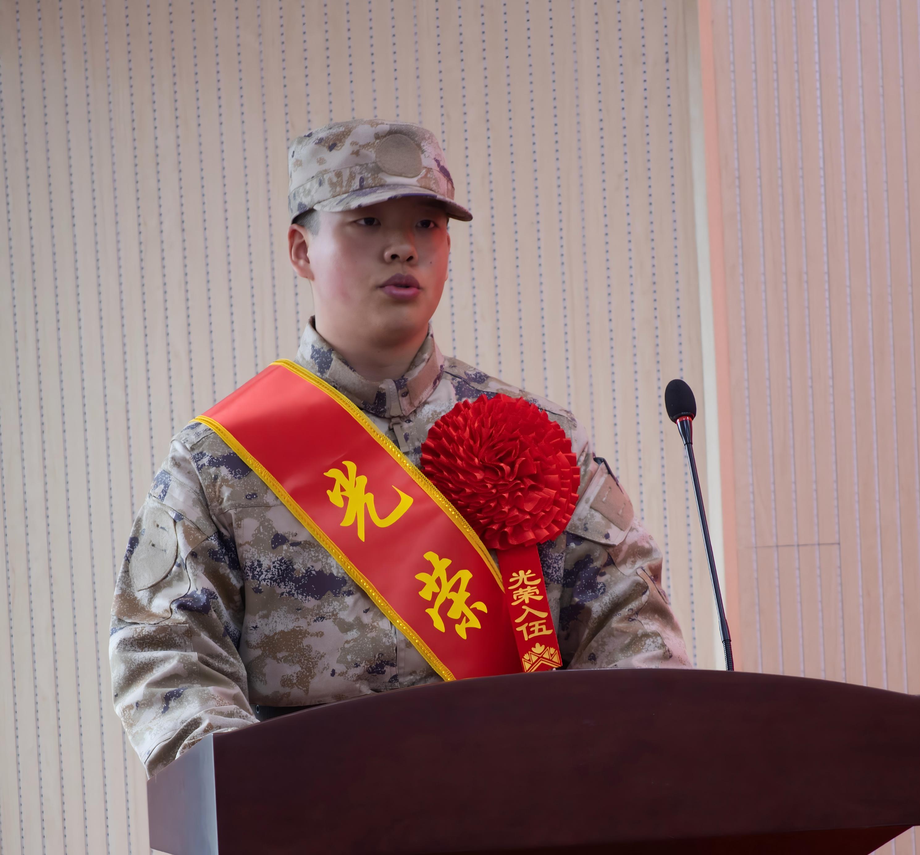 身披戎裝、意氣風發(fā)的新兵們目光堅定、精神抖擻,懷揣著對軍營的憧憬和對祖國的忠誠,整裝待發(fā)。我校優(yōu)秀退役大學生士兵彭威深情寄語新兵:“軍營是淬煉青春的大熔爐,愿你們珍惜這段時光,在挑戰(zhàn)中成長、在汗水中收獲,帶著初心與勇氣乘風破浪,用青春與擔當書寫屬于自己的軍旅榮光!”