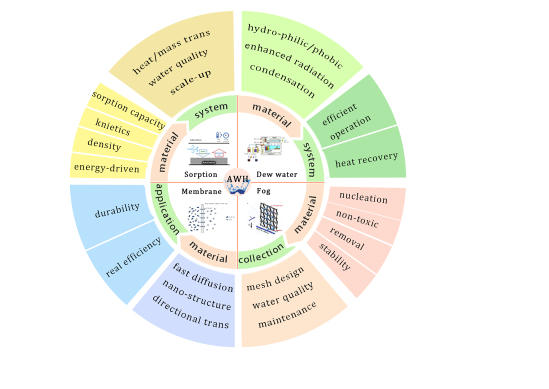 我校能動學院教師王佳韻在能源環(huán)境頂級期刊《能源環(huán)境科學》(Energy Environmental Science, IF:39.7)上發(fā)表了題為“空氣取水技術:關鍵指標和挑戰(zhàn)”(Atmospheric water harvesting: Critical Metrics and Challenges)的觀點論文。本論文梳理了當前空氣取水技術存在的挑戰(zhàn)和障礙,總結了技術革新的關鍵指標,為該領域未來的科學發(fā)展路徑提供了建議。王佳韻為該論文第一作者,上海理工大學為該論文第一單位。該研究聯(lián)合上海交通大學王如竹教授團隊進行,同時得到了國家自然科學基金青年基金(52006145)、上海市晨光計劃(19CG54)、上海市青年英才計劃(20YF1431500)等項目的資助。本文聚焦空氣取水這門新興的技術,開展從大氣中直接獲取淡水,致力于解決全球淡水短缺危機??諝馊∷饕ńY露、吸附、膜分離和霧收集四種方式,是分布式靈活供水的有效方案,極具應用潛力。本文總結了空氣取水領域發(fā)展存在的挑戰(zhàn)和障礙;構建了全面的空氣取水性能評價體系;并呼吁材料學、熱力學、氣象學、工程學等多學科交叉融合,攜手共進,一同推動